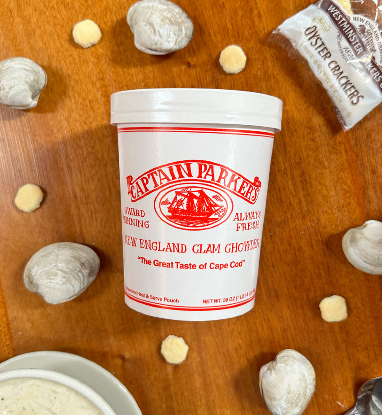 The newest addition to my New England pantry staples from Tiny Arms Ceramics is the Captain Parker's Mug. With the iconic logo that can be found in nearly every seafood department in many Northeast grocery stores, Captain Parker's chowder in its familiar white paper tub is our go to when not making it from scratch. While the mug is obviously perfect for chowder, no one will say a word if you fill it up with other soups or coffee.